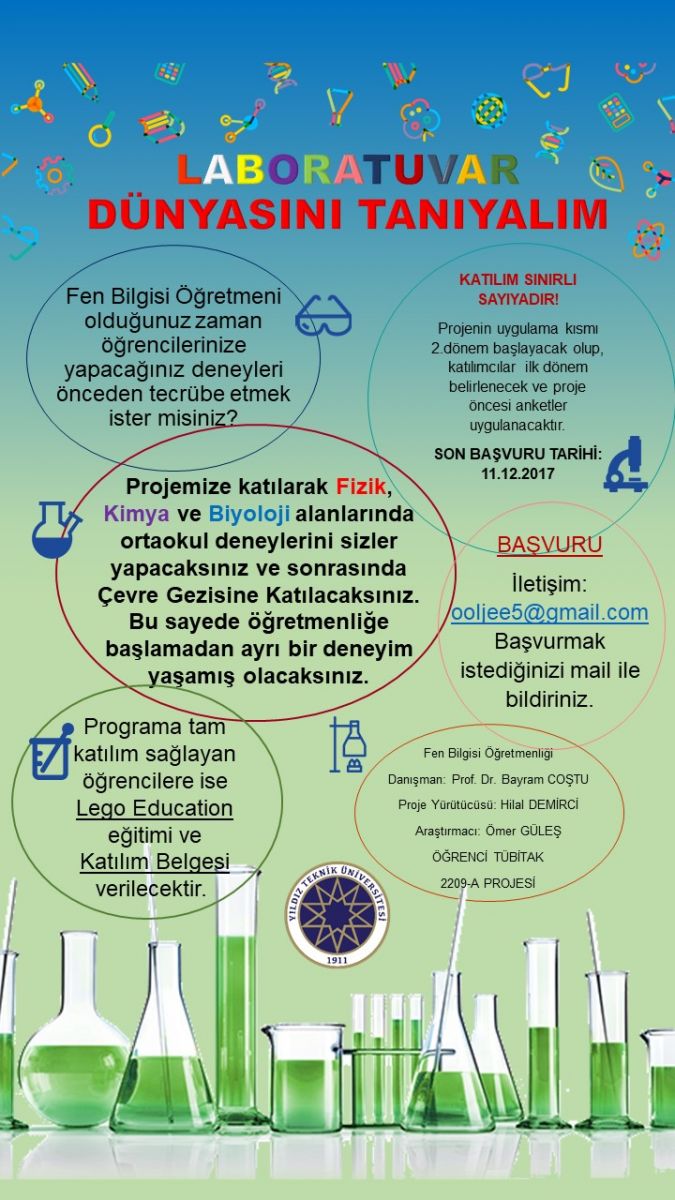 Dördüncü sınıf öğrencilerimizden Hilal Demirci'nin yürütücülüğünü, Prof. Dr. Bayram Coştu'nun danışmanlığını yaptığı TÜBİTAK 2209/A projesine katılmak isteyenler 11.12.2017 tarihine kadar başvuruda bulunabilirler.